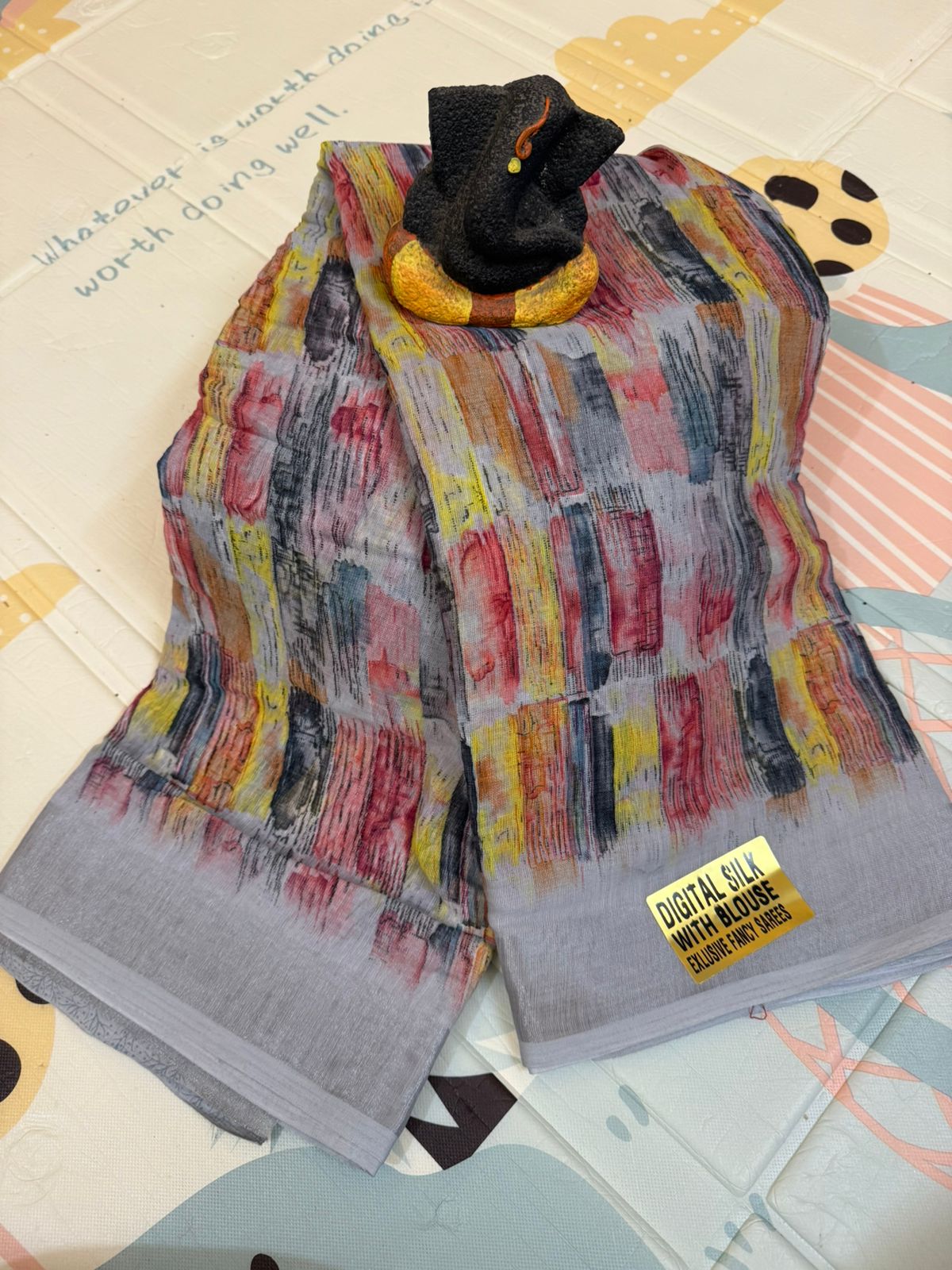 Step out in style with this Digital Silk Saree, a stunning blend of contemporary artistry and ethnic charm. The saree features an abstract pastel digital print in soothing pastel tones of pink, lavender, teal, and mint green. Its soft silk finish gives a luxurious feel, while the coordinated blouse fabric ensures a polished and complete look. Perfect for casual chic, office gatherings, or semi-formal events.