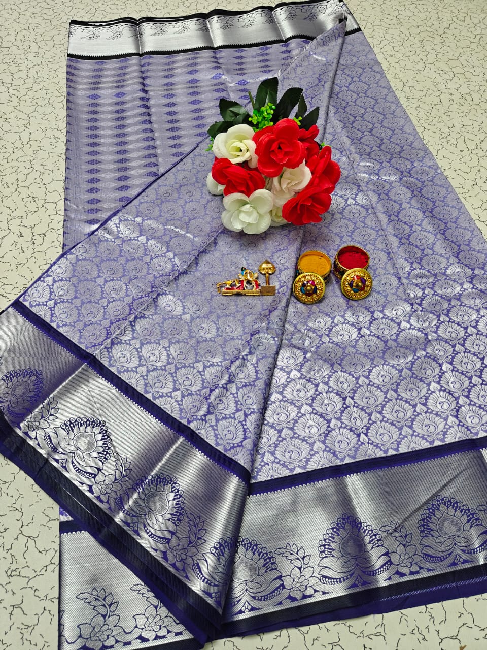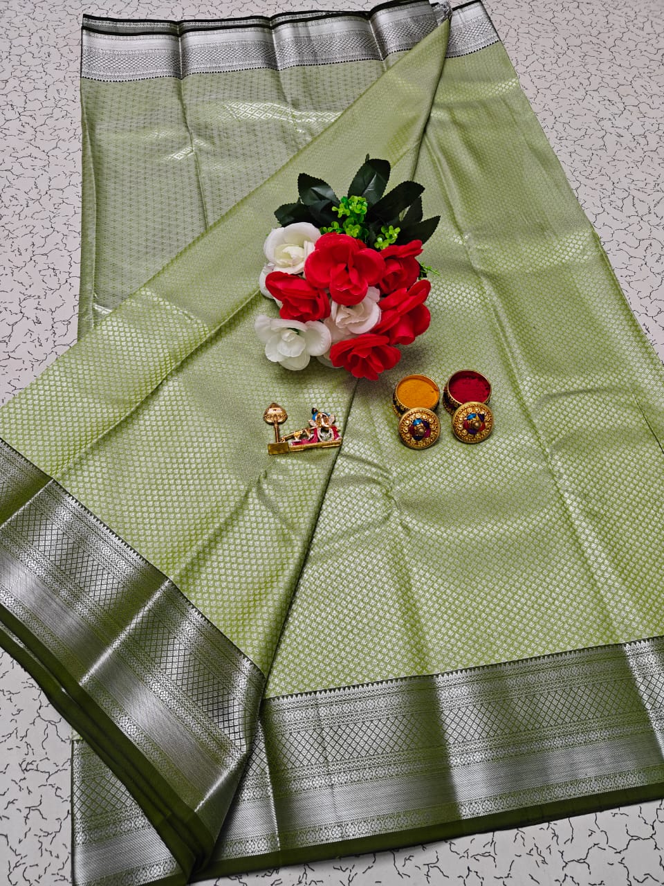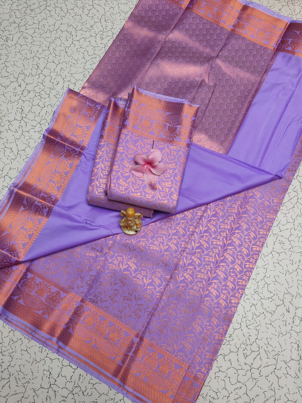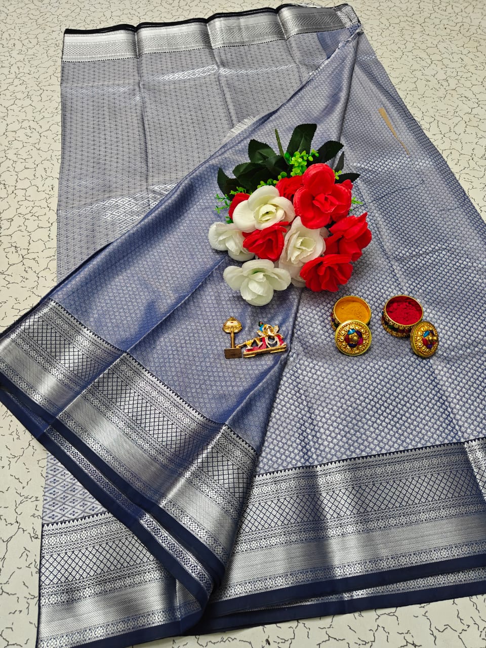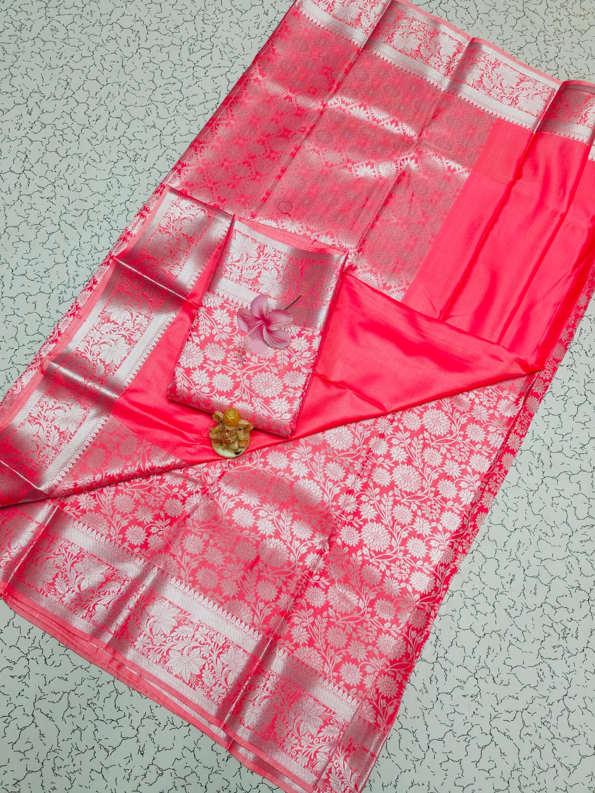Elite Bridal Fancy Silk Saree crafted in pure bridal-grade silk with Samuthrika/Vasthrakala weave. Features a rich contrasting pallu, intricate gold-silver-copper zari, and comes with a matching 110 Karizma blouse.