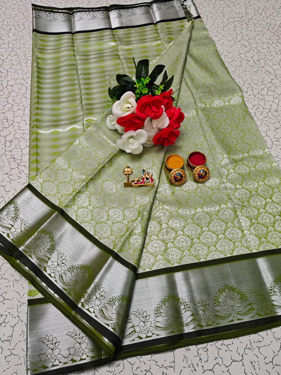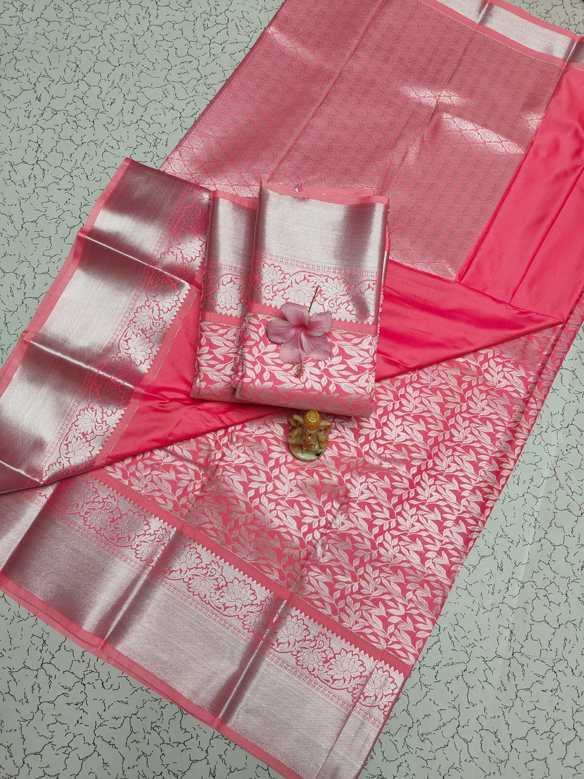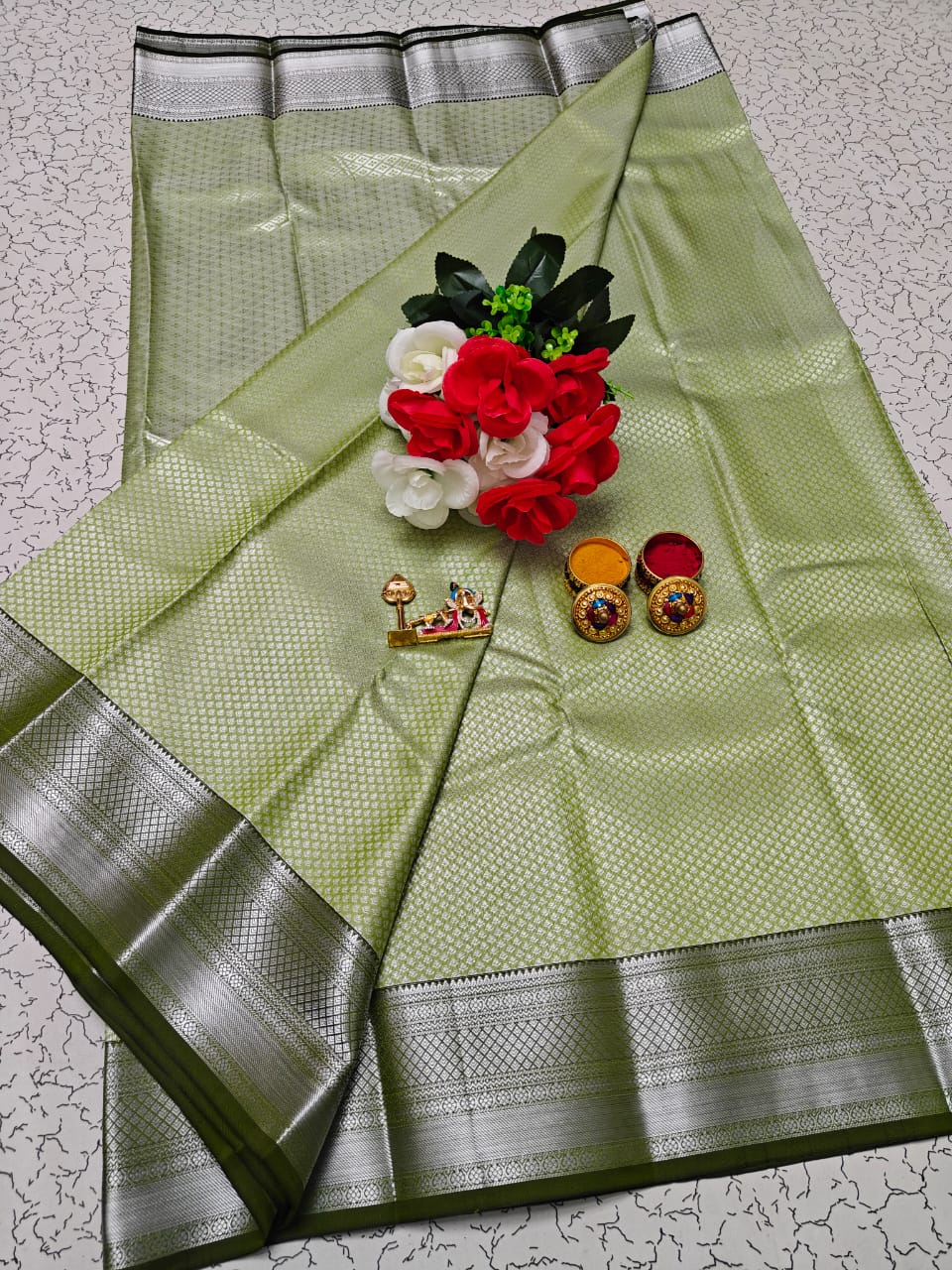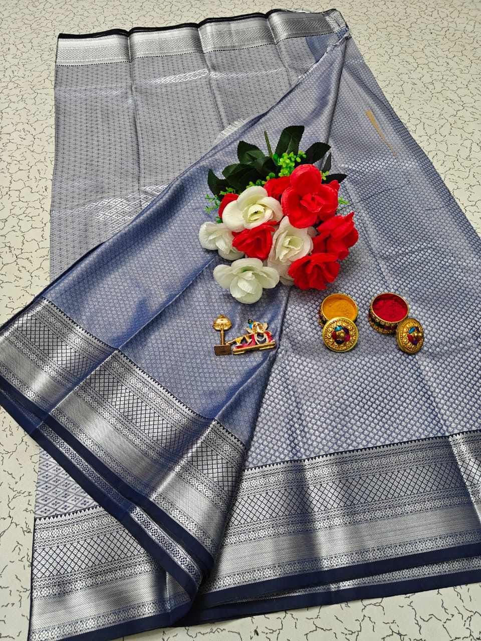 Elite Bridal Fancy Silk Saree crafted in pure bridal-grade silk with Samuthrika/Vasthrakala weave. Features a rich contrasting pallu, intricate gold-silver-copper zari, and comes with a matching 110 Karizma blouse.