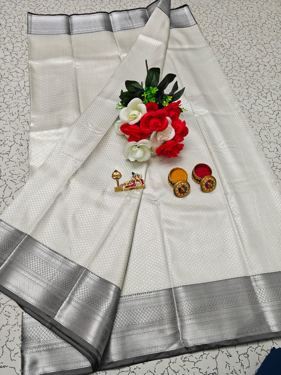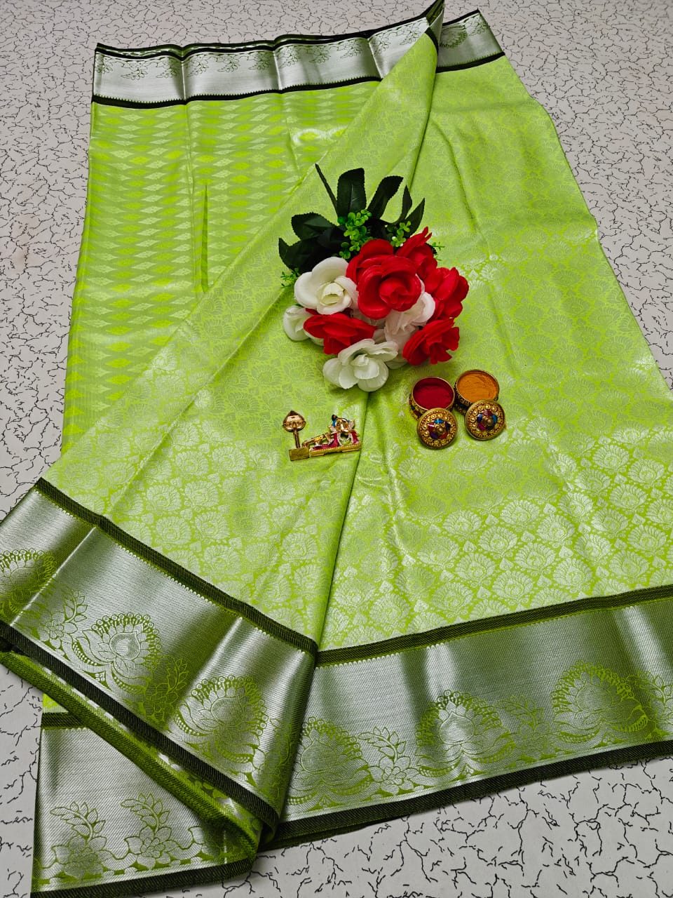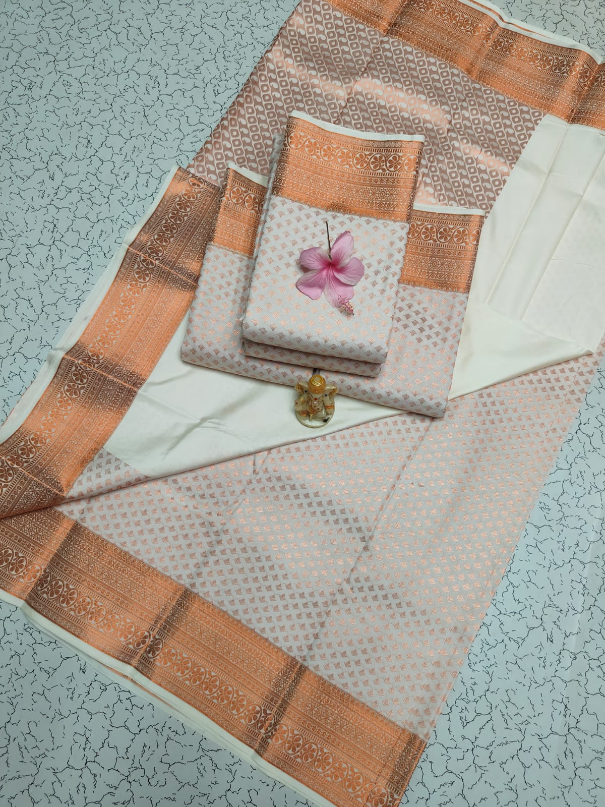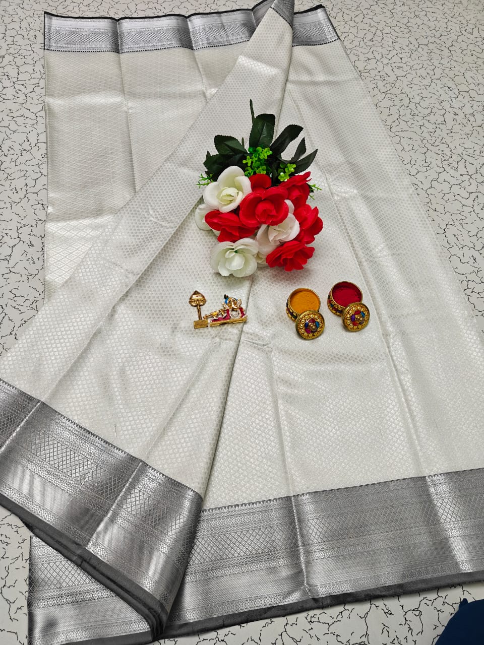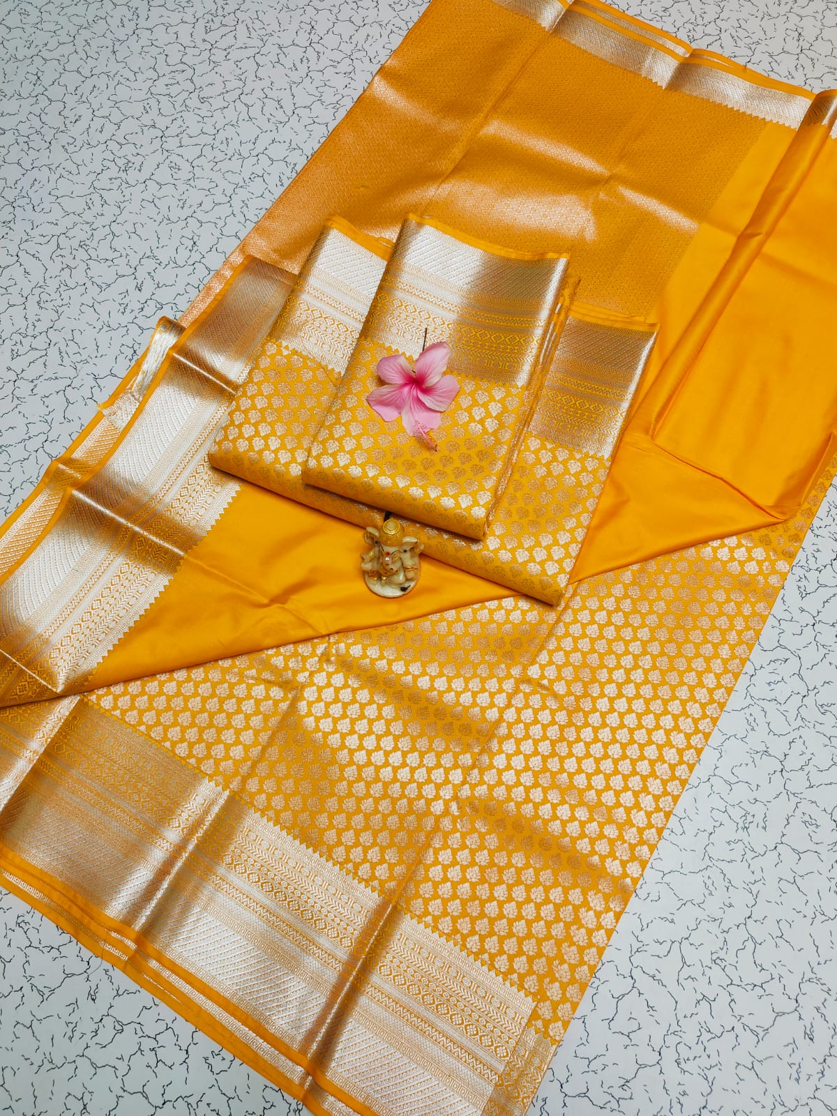 Elite Bridal Fancy Silk Saree crafted in pure bridal-grade silk with Samuthrika/Vasthrakala weave. Features a rich contrasting pallu, intricate gold-silver-copper zari, and comes with a matching 110 Karizma blouse.