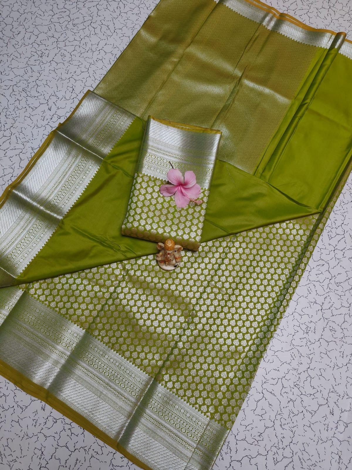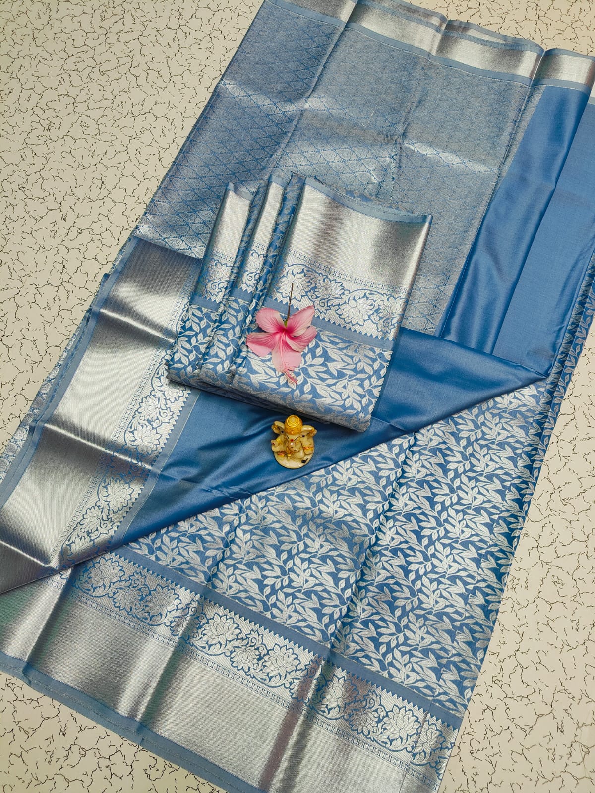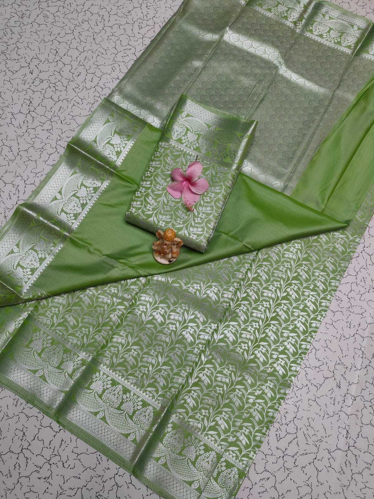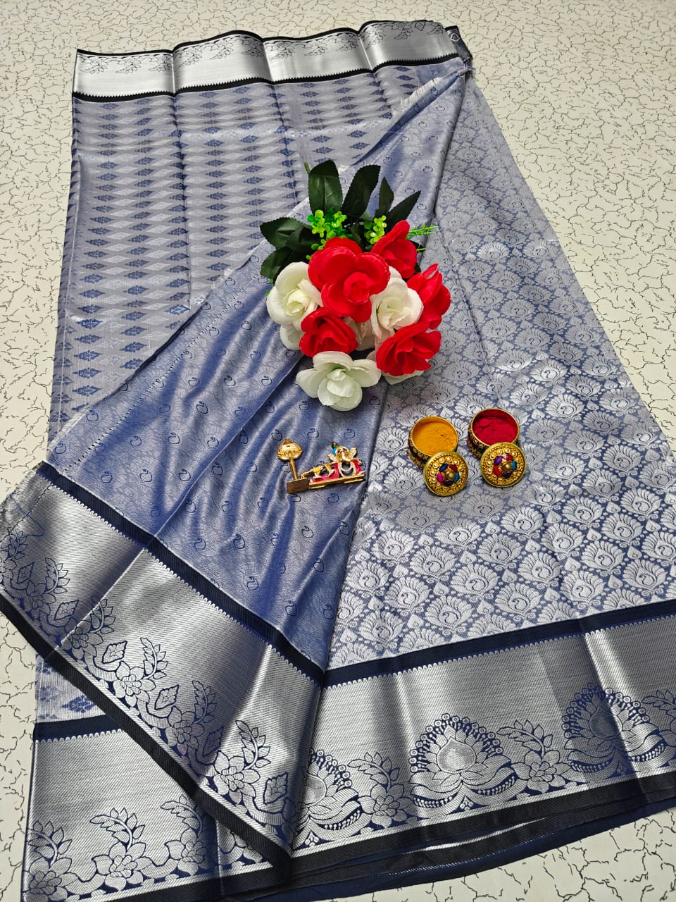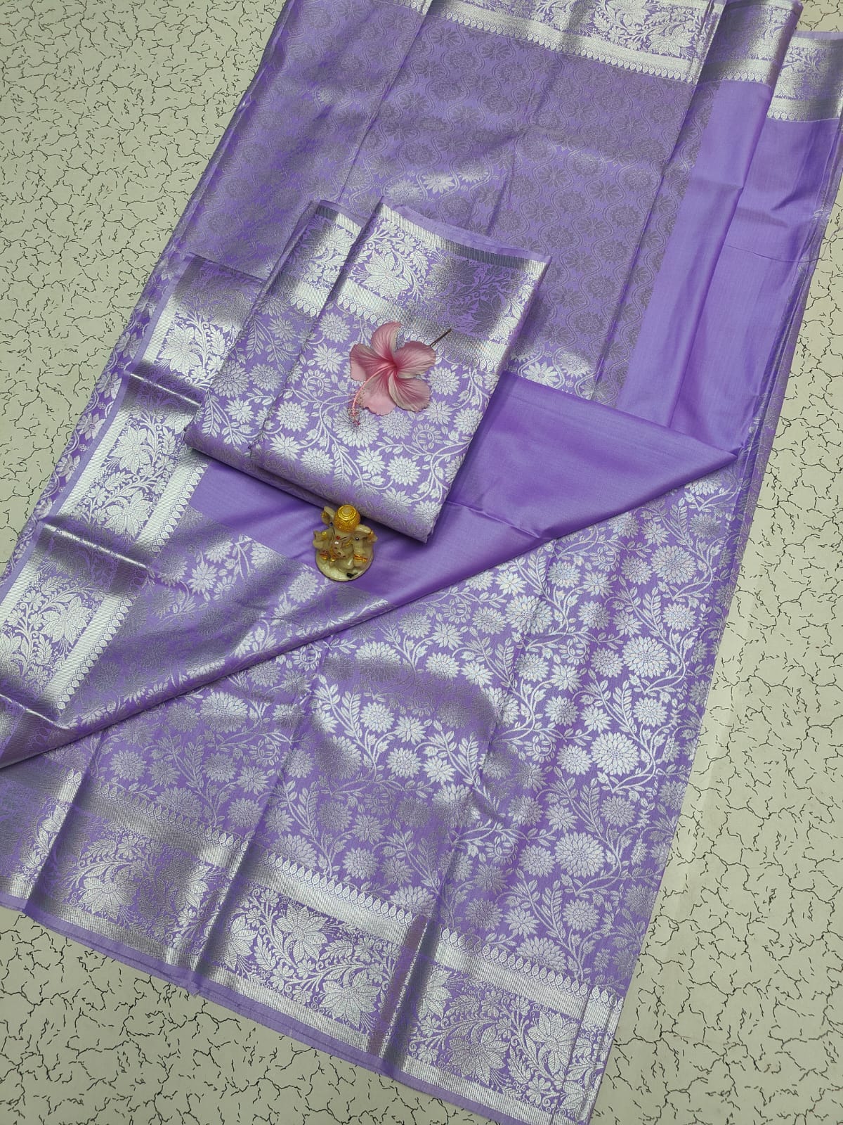 Elite Bridal Fancy Silk Saree crafted in pure bridal-grade silk with Samuthrika/Vasthrakala weave. Features a rich contrasting pallu, intricate gold-silver-copper zari, and comes with a matching 110 Karizma blouse.