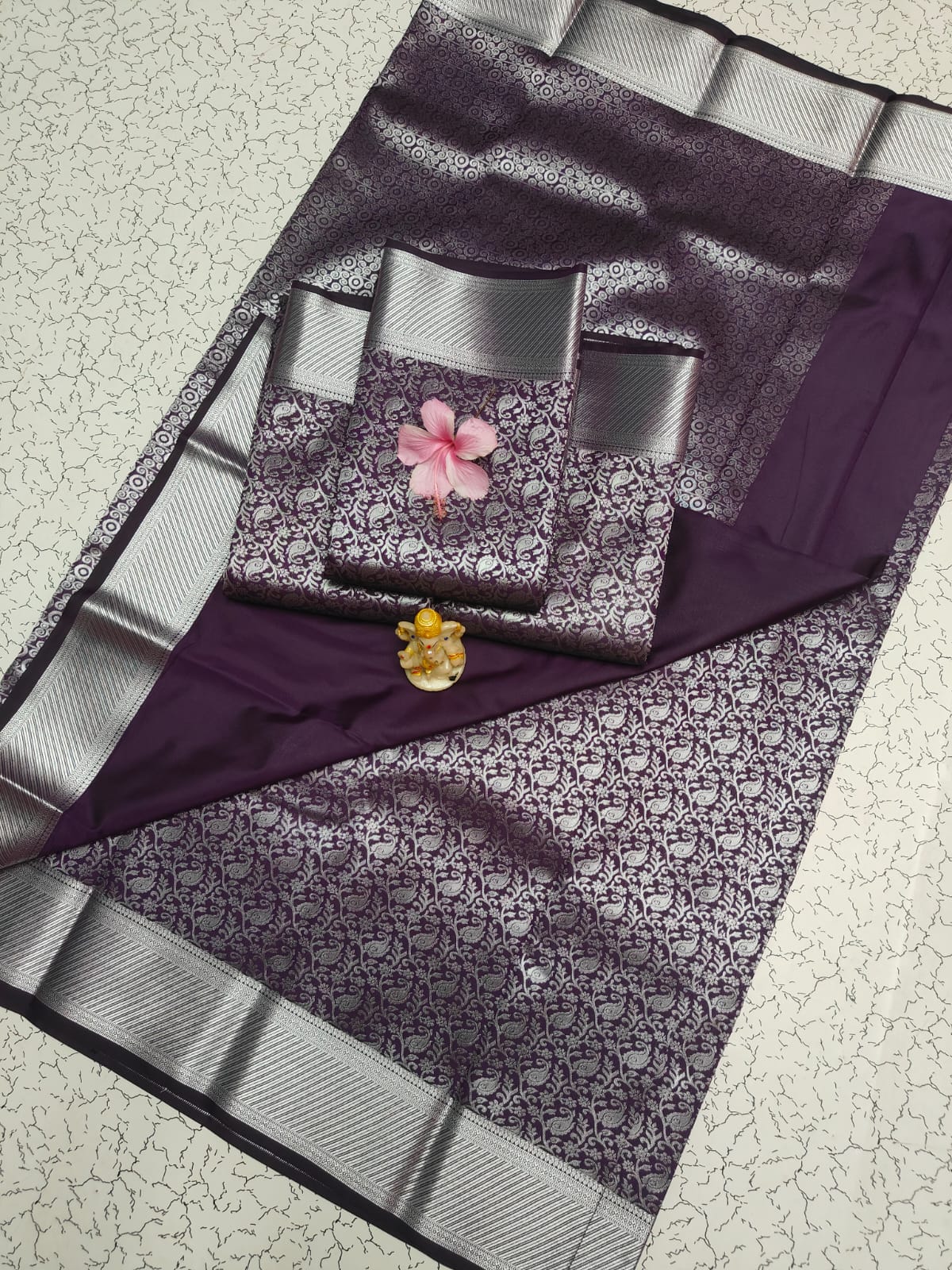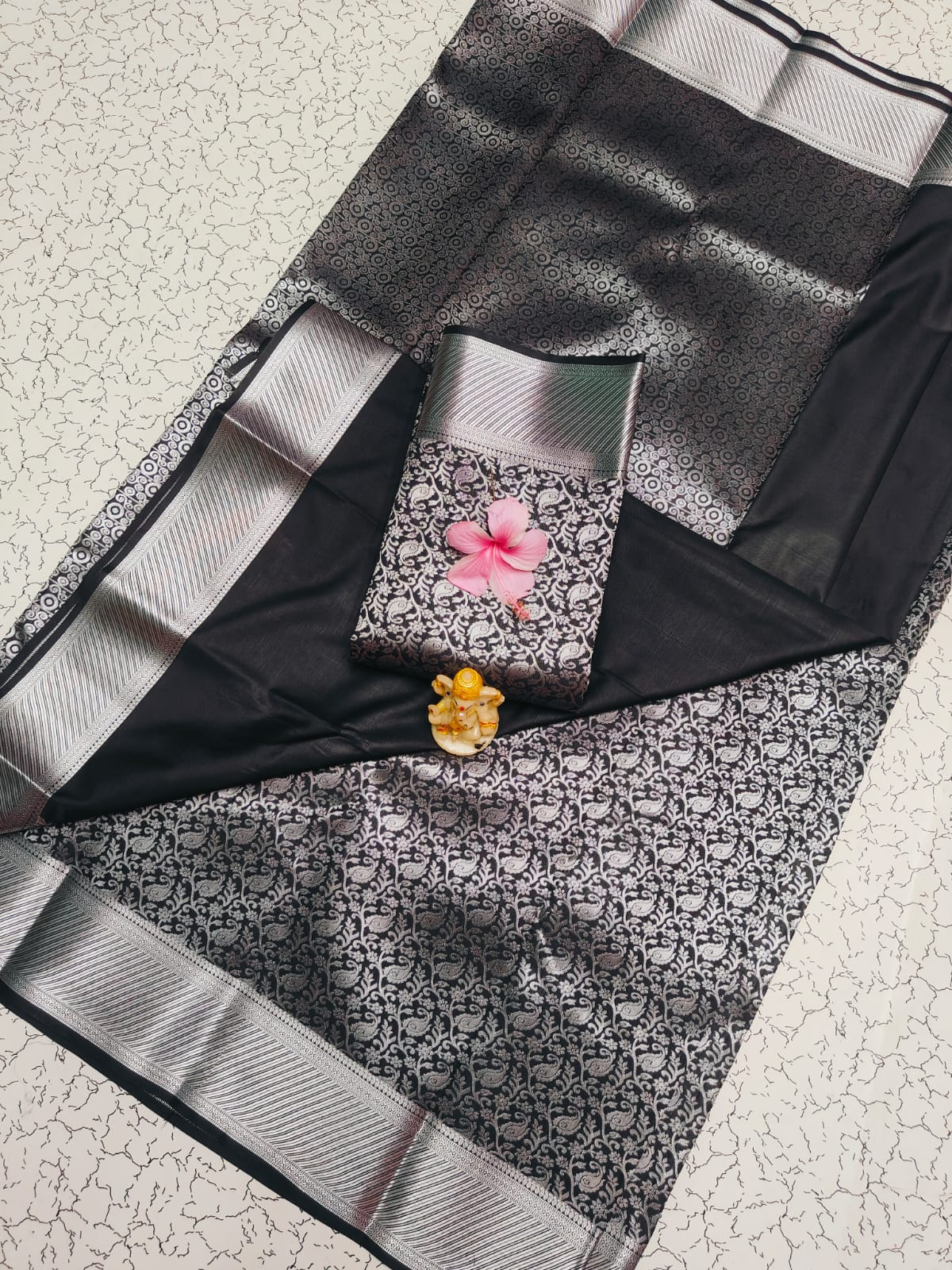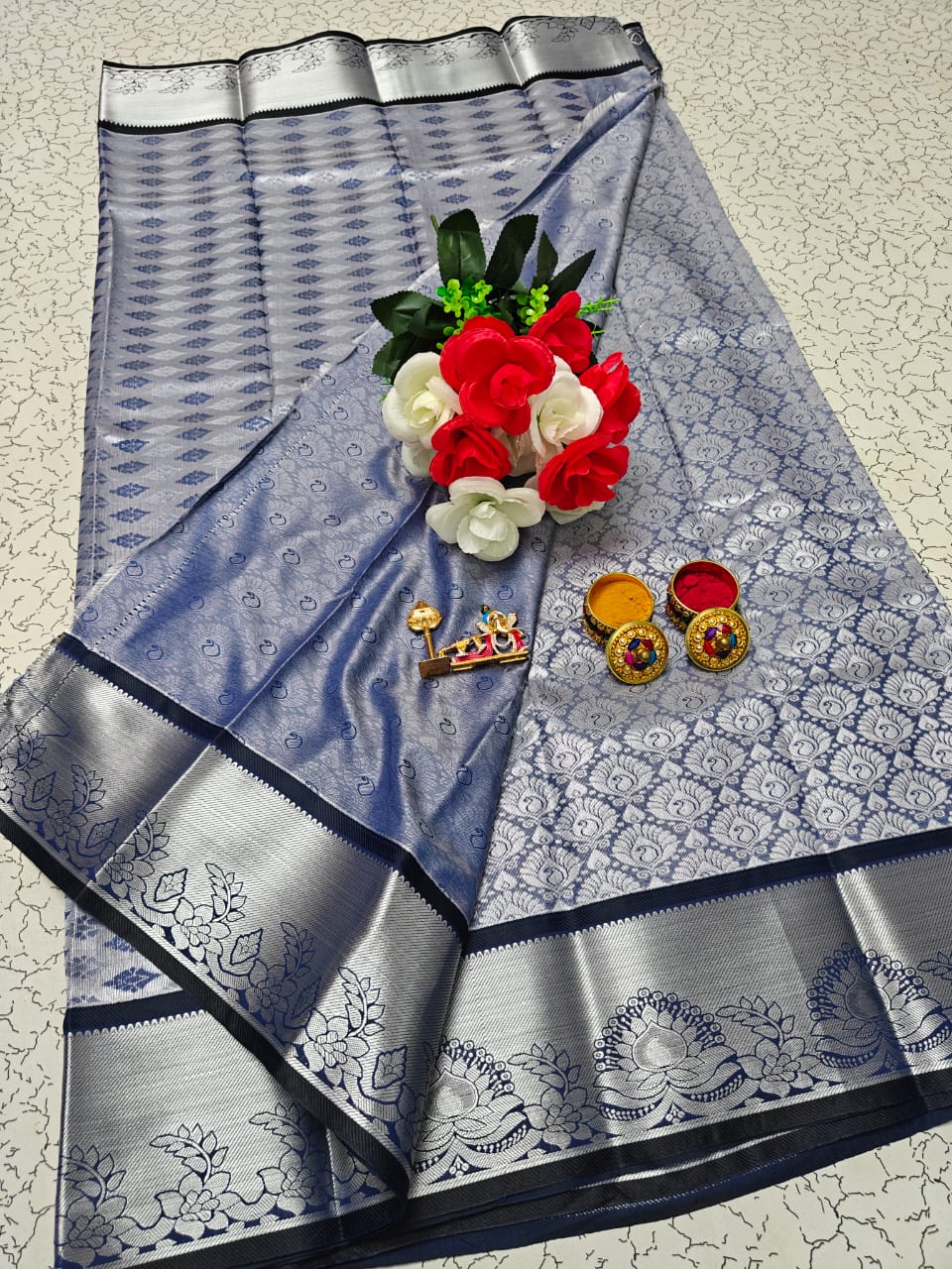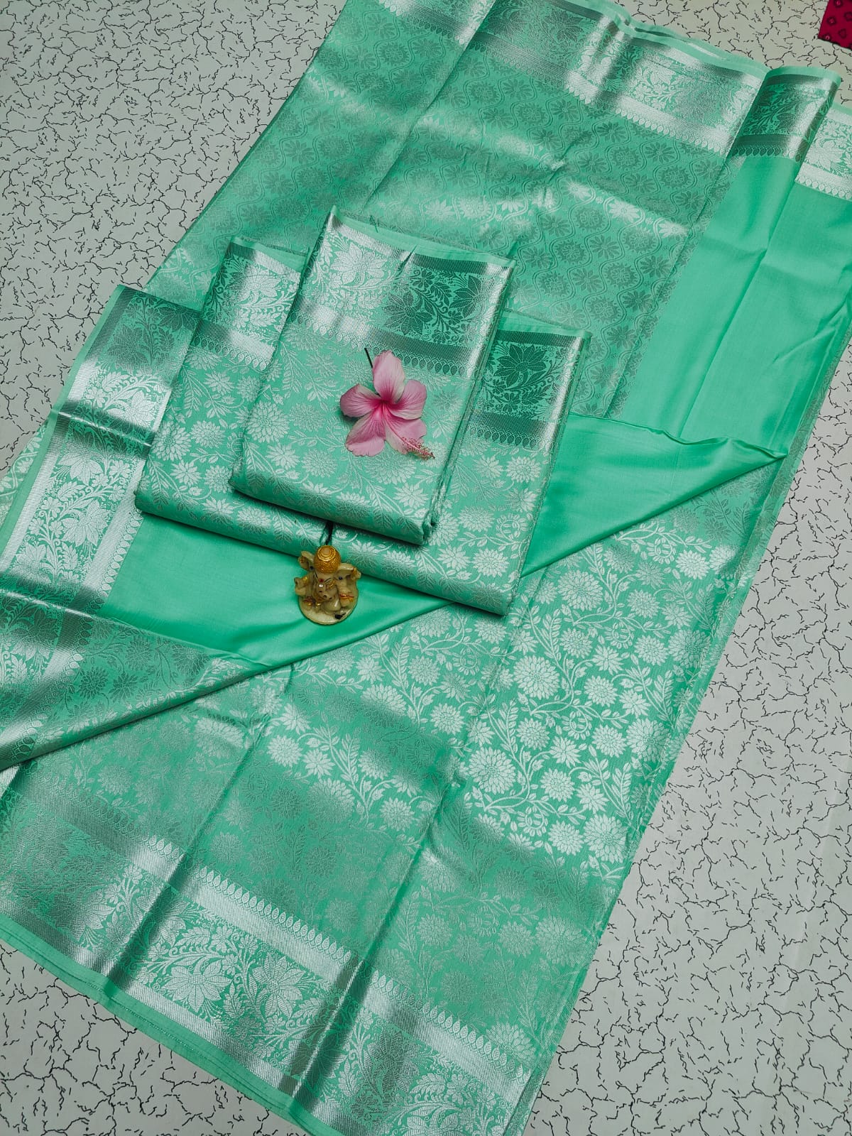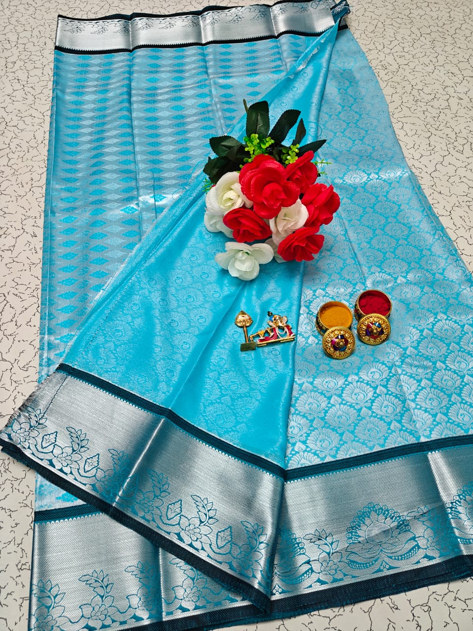 Elite Bridal Fancy Silk Saree crafted in pure bridal-grade silk with Samuthrika/Vasthrakala weave. Features a rich contrasting pallu, intricate gold-silver-copper zari, and comes with a matching 110 Karizma blouse.
